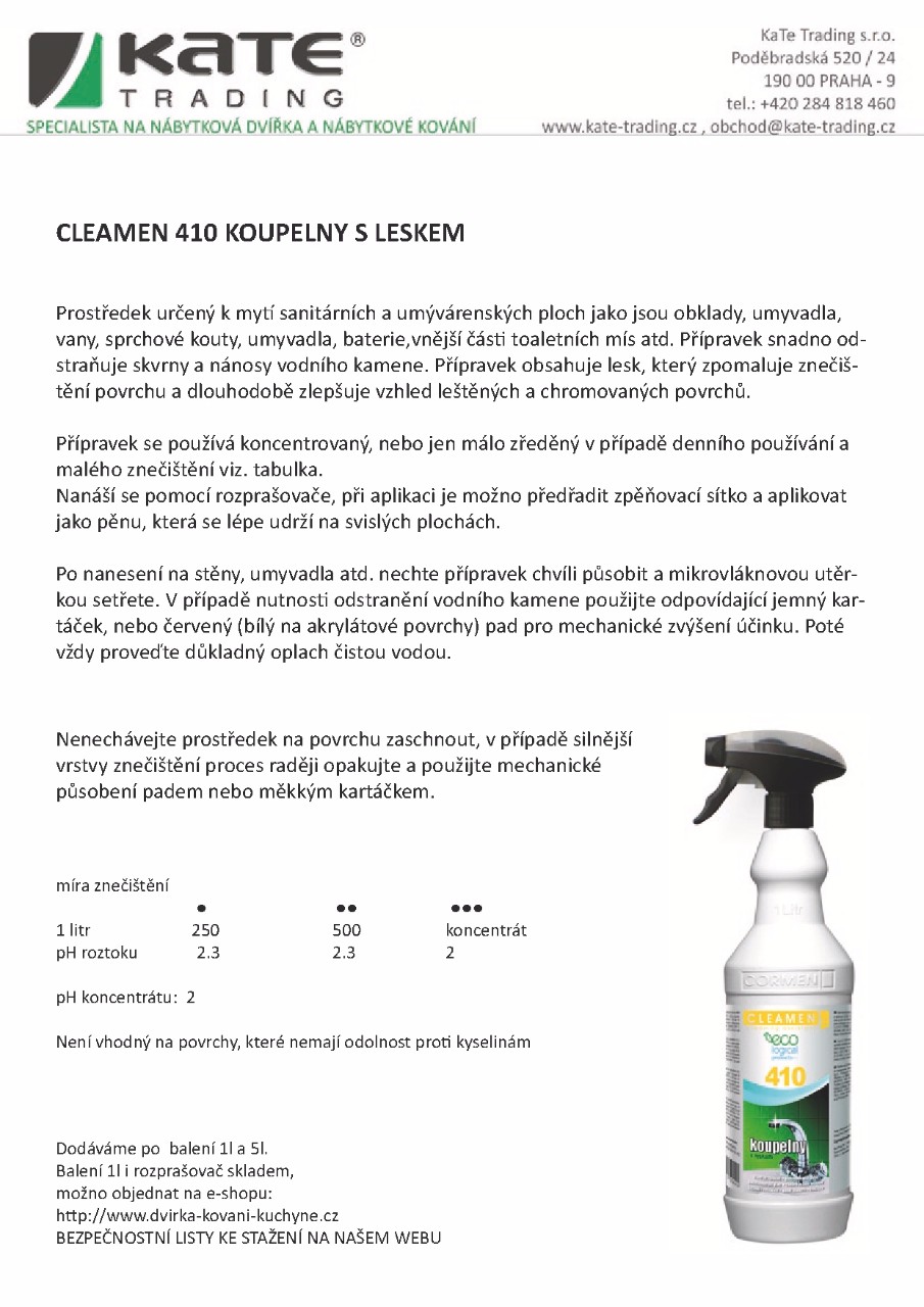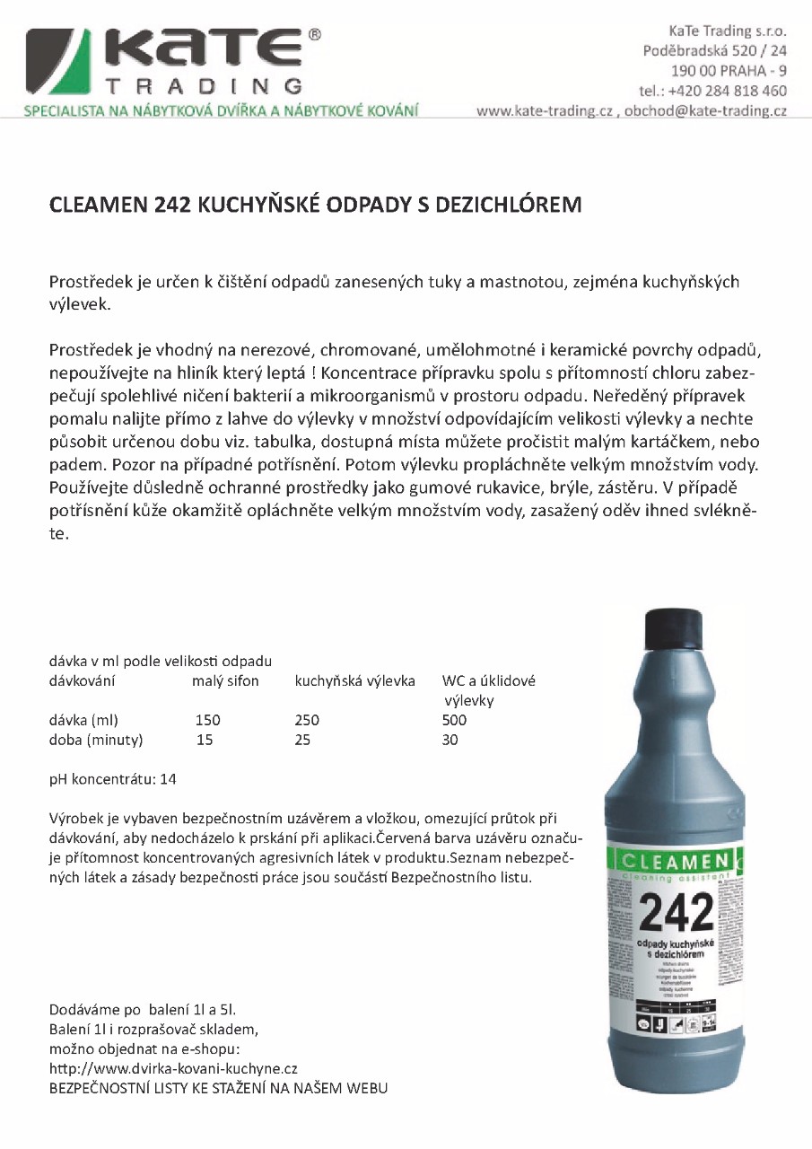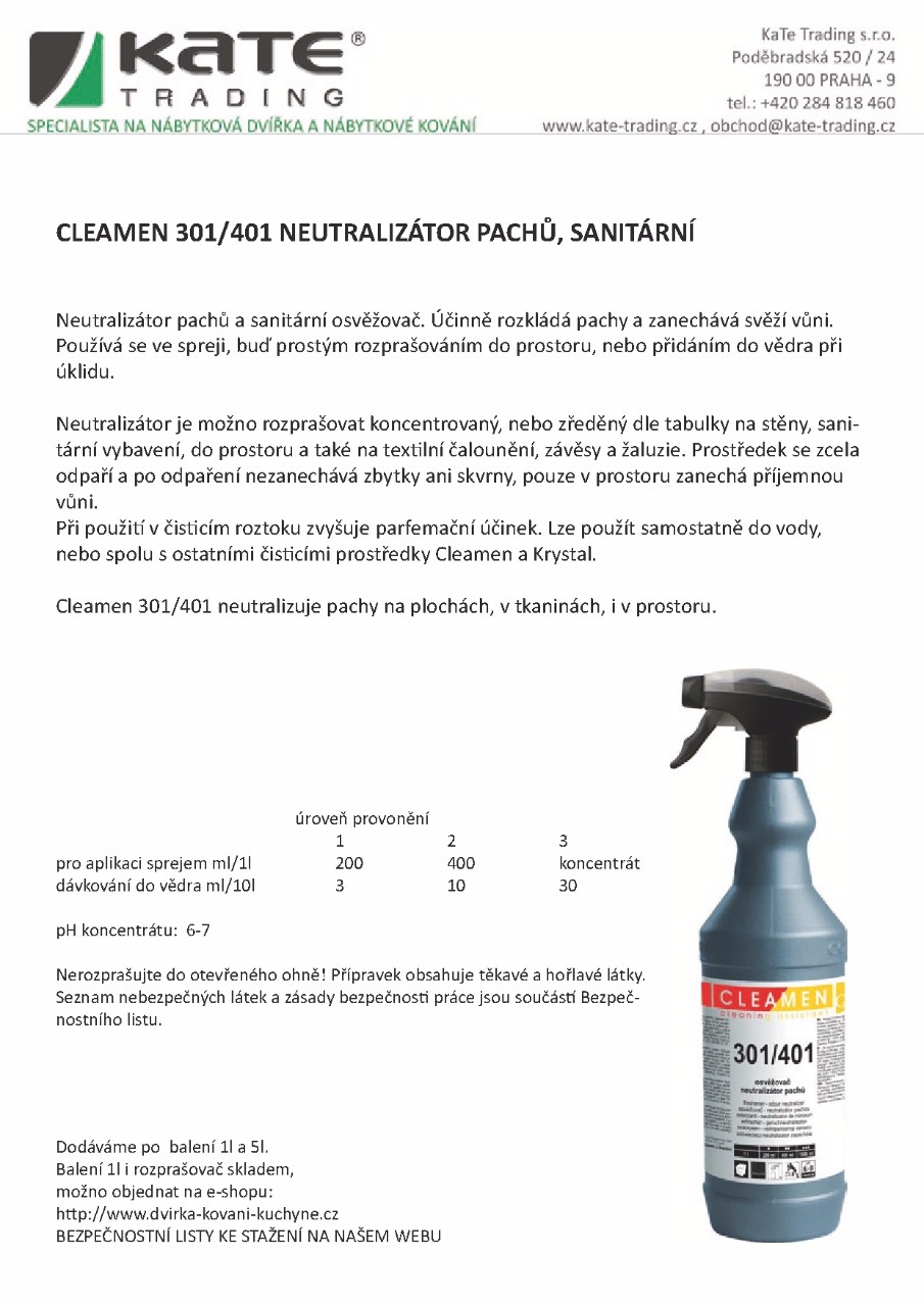 | CLEAMEN 242 na kuchyňské odpady s dezichlórem | CLEAMEN 410 koupelny s leskem | CLEAMEN 101/201 osvěžovač neutralizátor pachů |